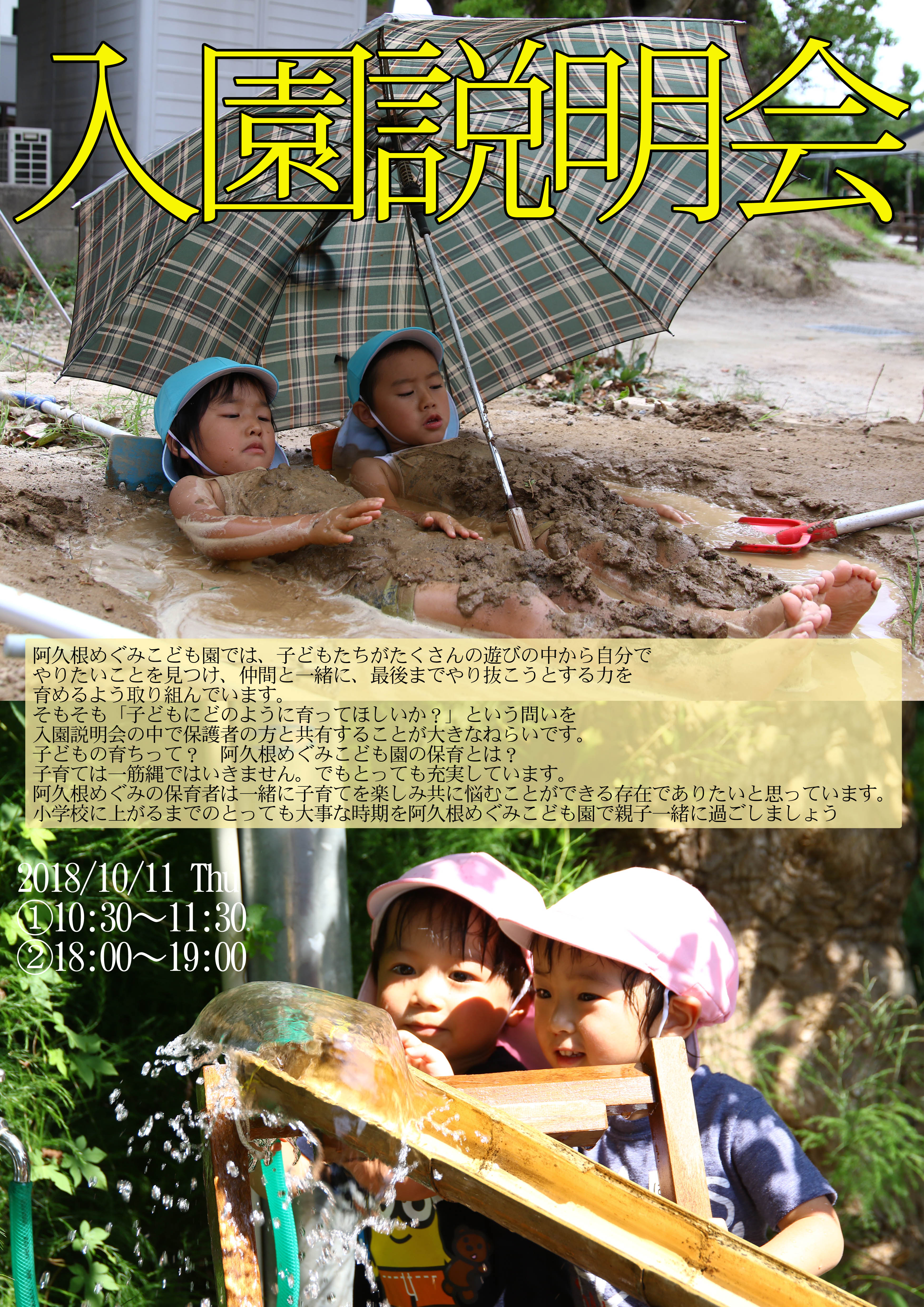 2019年度の入園希望者に向けての入園説明会を下記の日程で行います。